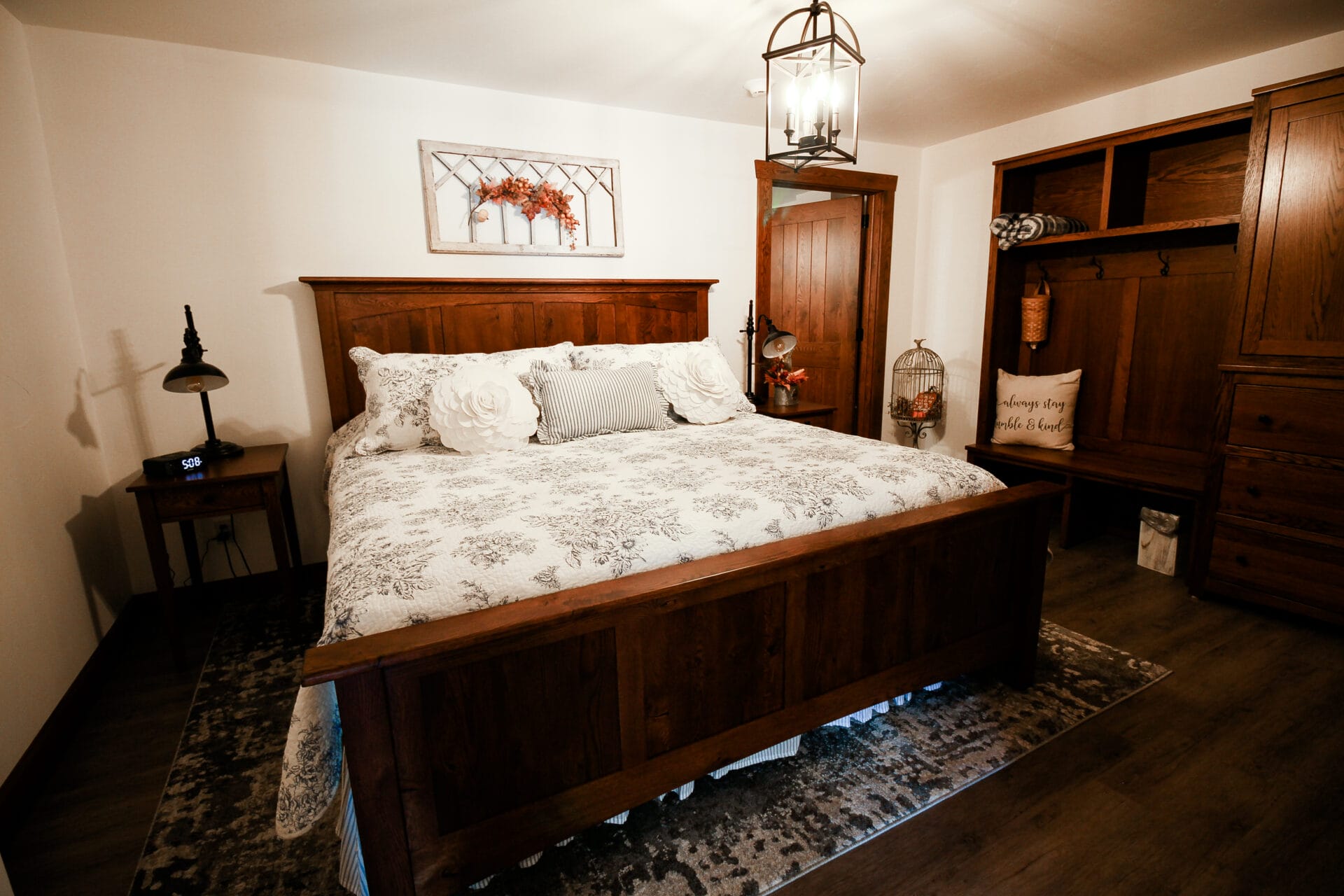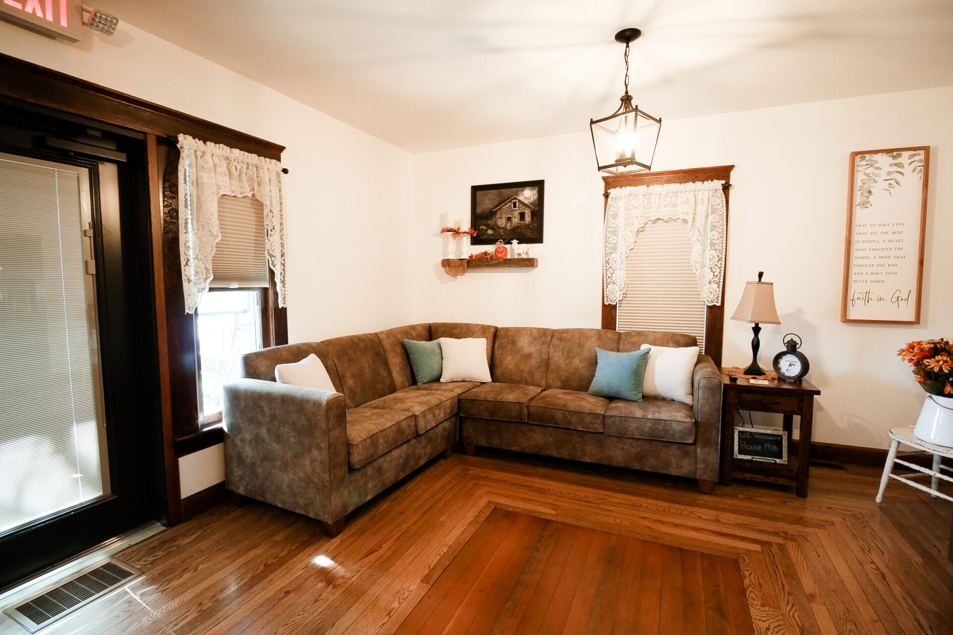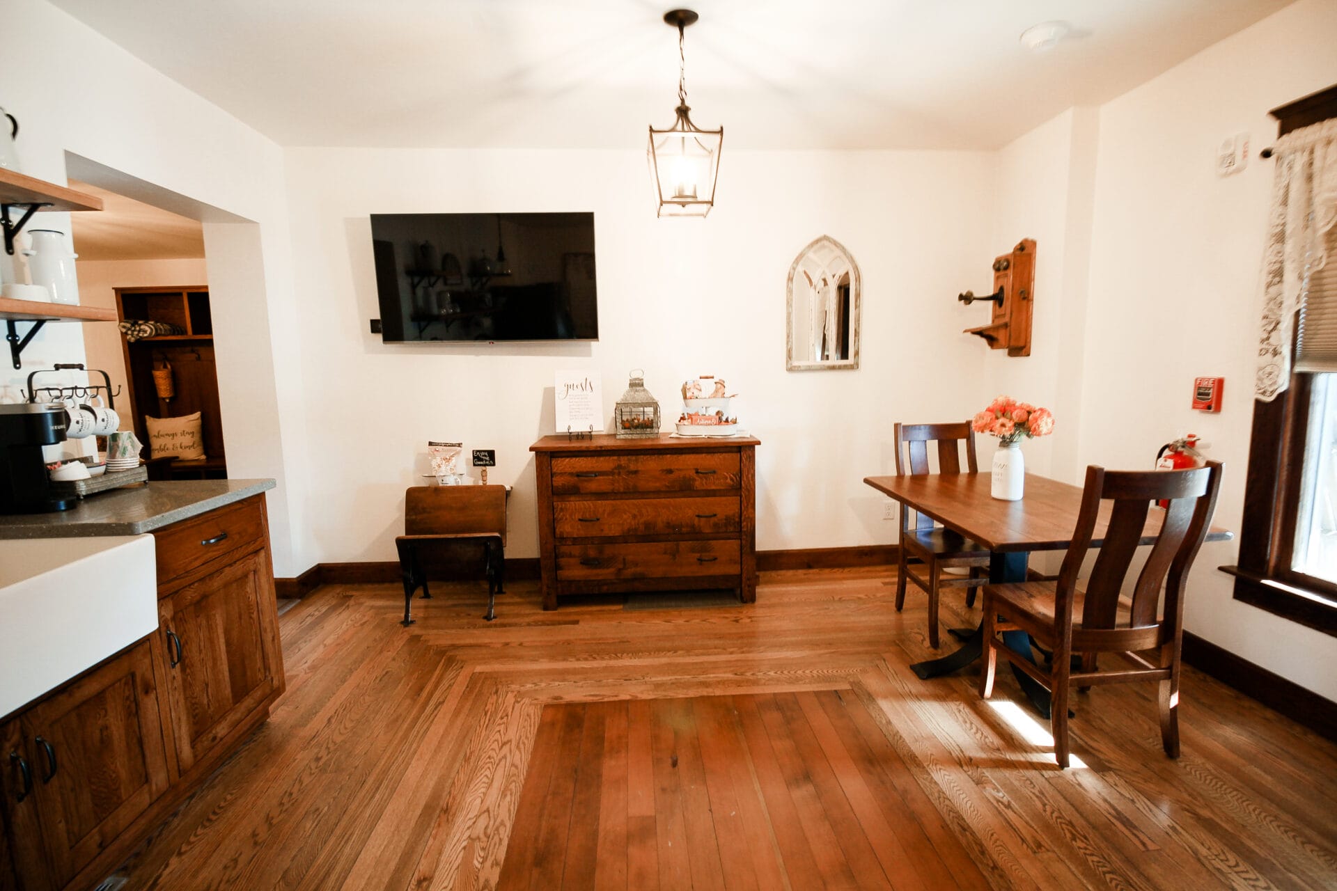 The charming building has a rich history with origins dating back to as early as the mid-1800s . The original structure burnt down and was rebuilt in 1918, but it is believed that parts of the early foundation still remain. It has operated as numerous businesses and has seen a handful of owners throughout its life. This newly-restored one bedroom suite on main floor features some original chestnut window trim, hardwood floors, locally-made Amish furniture, and beautiful views of historic downtown Berlin